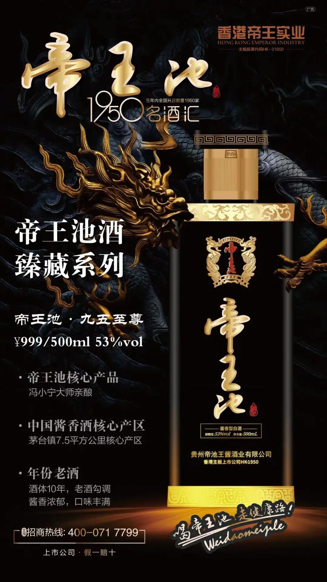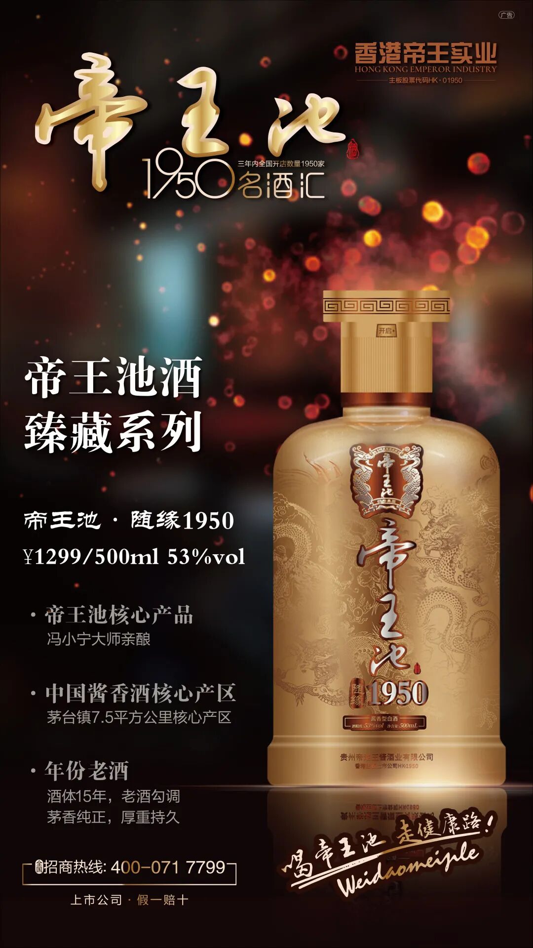 帝王池“九五至尊”“随缘1950”选取20年老酒体,庄重典雅、品质超群礼盒包装